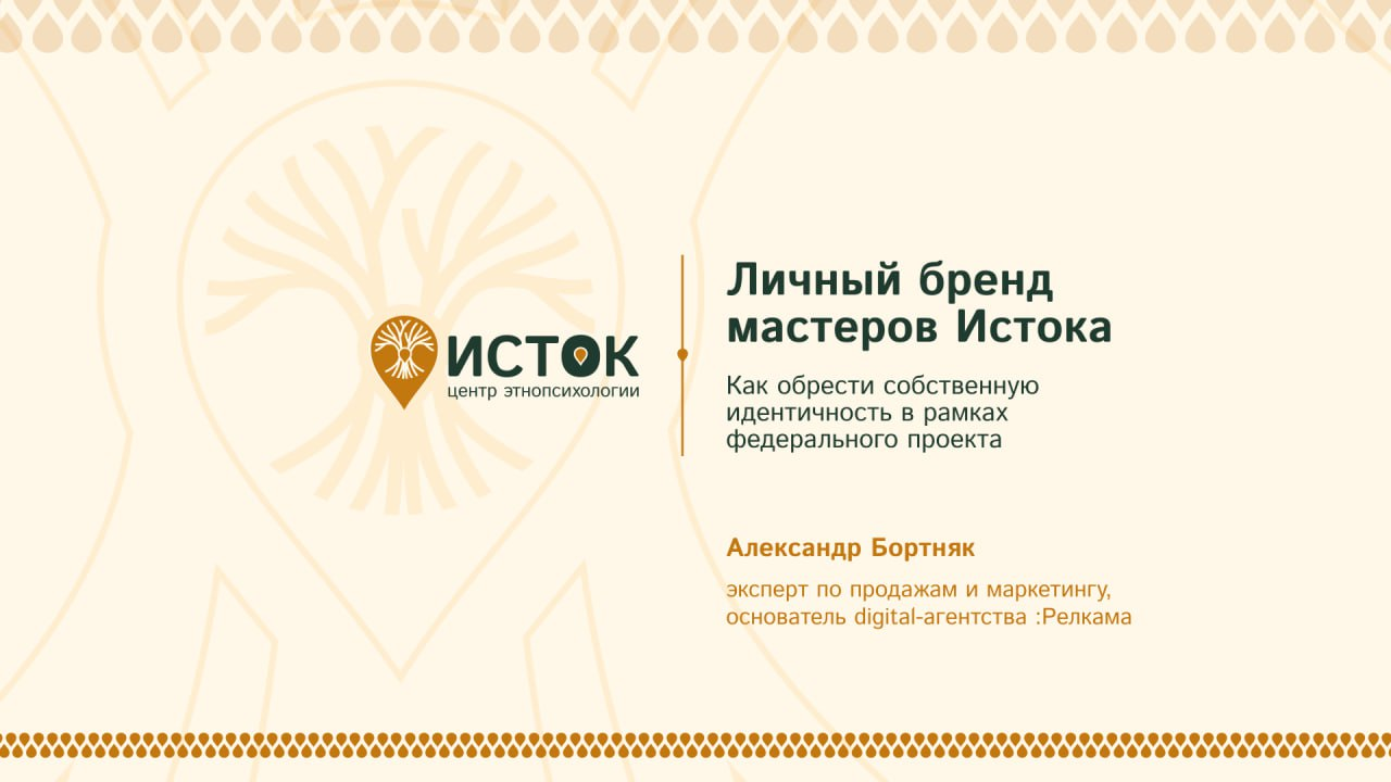 На прошлой неделе провёл закрытый эфир в сообществе этнопсихологии «Исток» — поговорили о личном бренде мастеров, которые работают внутри единого бренда сообщества (который, кстати, разработало моё агентство Релкама). Тема тонкая, многогранная, требующая внимания и бережности.